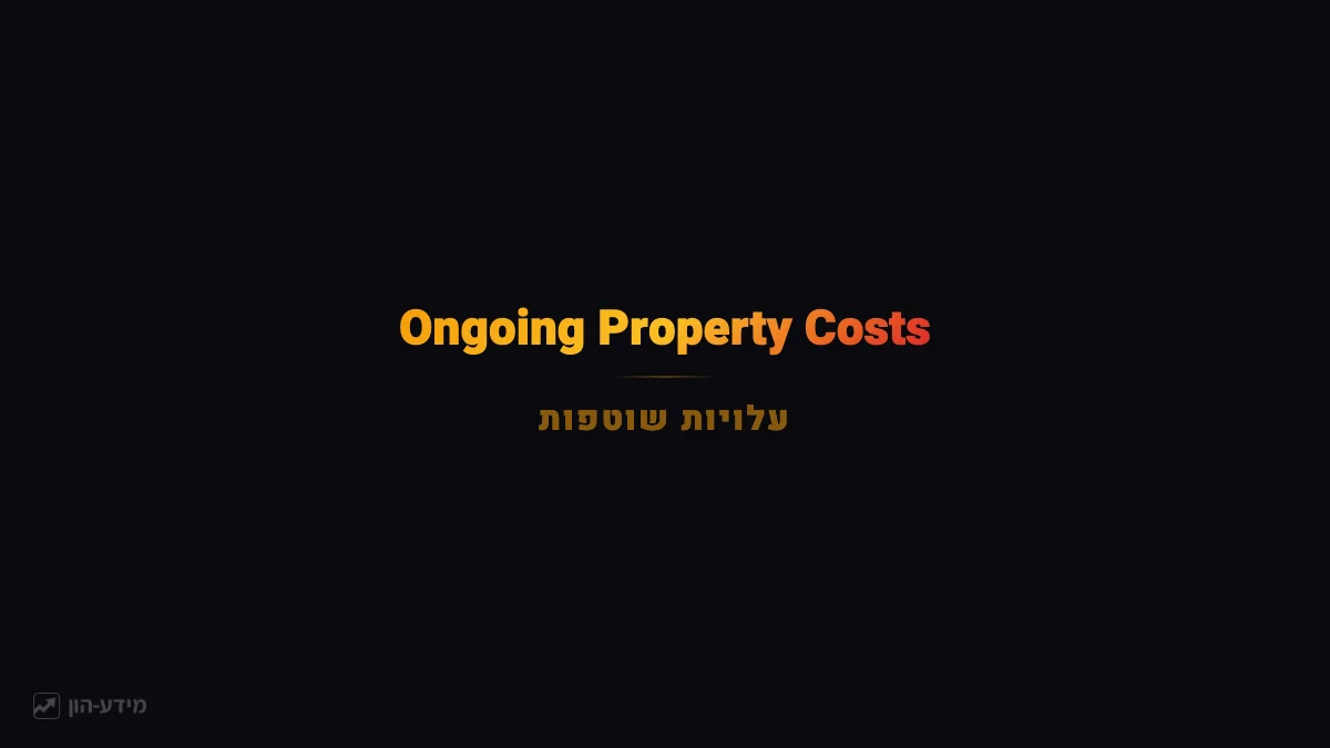 When budgeting for property ownership in Israel, the mortgage payment is just the beginning. Several recurring costs apply to every property owner, regardless of whether the property is occupied or rented out. Understanding these costs helps you calculate the true annual cost of ownership and — if you are buying as an investment — your net yield.